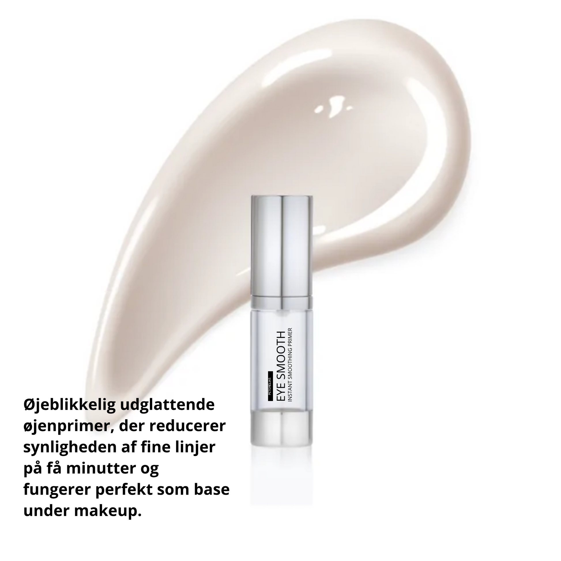 EYE SMOOTH er en øjeblikkeligt udglattende øjenprimer udviklet til straks at mindske synligheden af fine linjer og ujævnheder omkring øjnene. Den virker næsten usynligt på huden og efterlader øjenområdet glattere, mere ensartet og visuelt forynget – på få minutter.